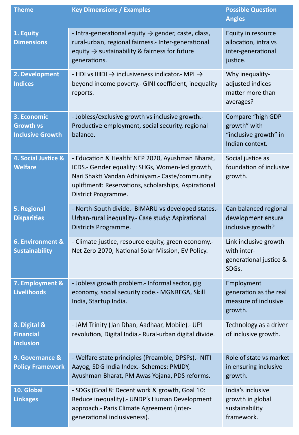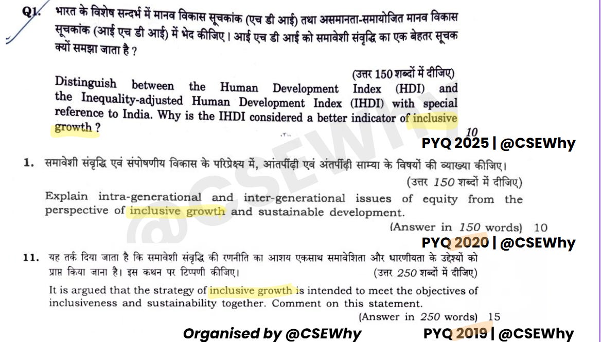 Across three different years, UPSC has directly framed questions around inclusive growth in different contexts: