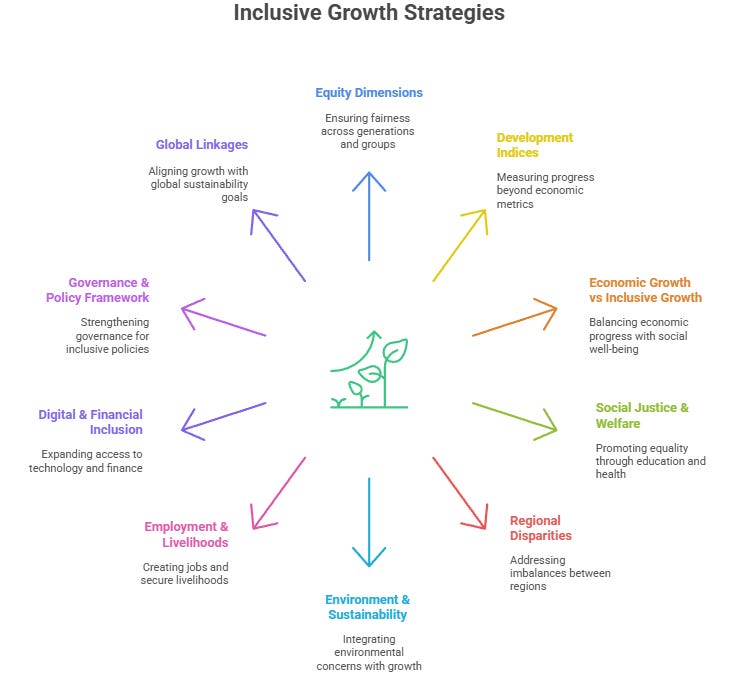 Conceptual clarity (HDI vs IHDI, meaning of equity, strategy of inclusive growth).